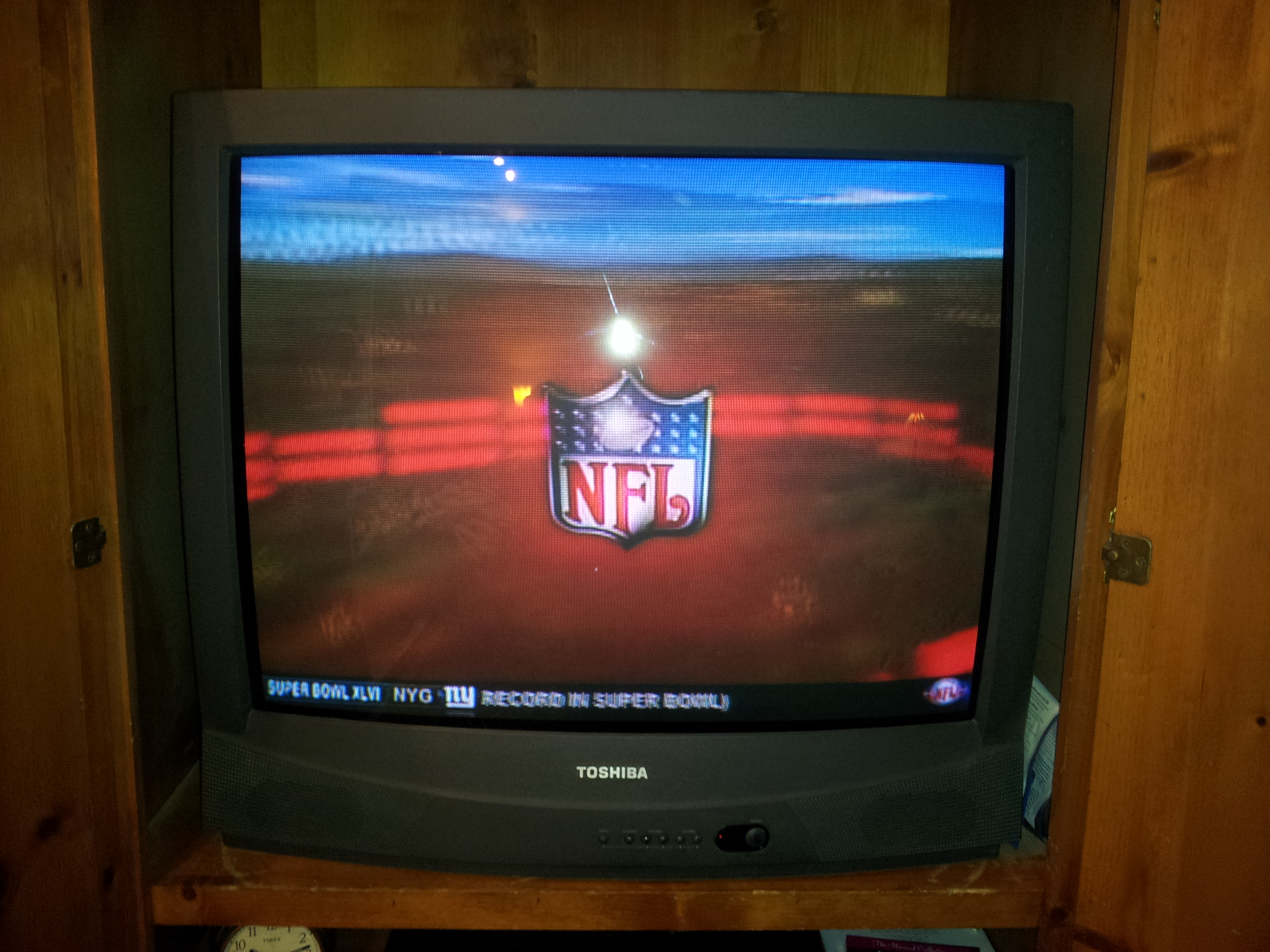 Our Toshiba is a hand-me-down from my brother. He gave it to us when he moved overseas back in 2001, when Tom Brady was in his second season with the Patriots and Eli Manning was making his mark at Ole Miss.
