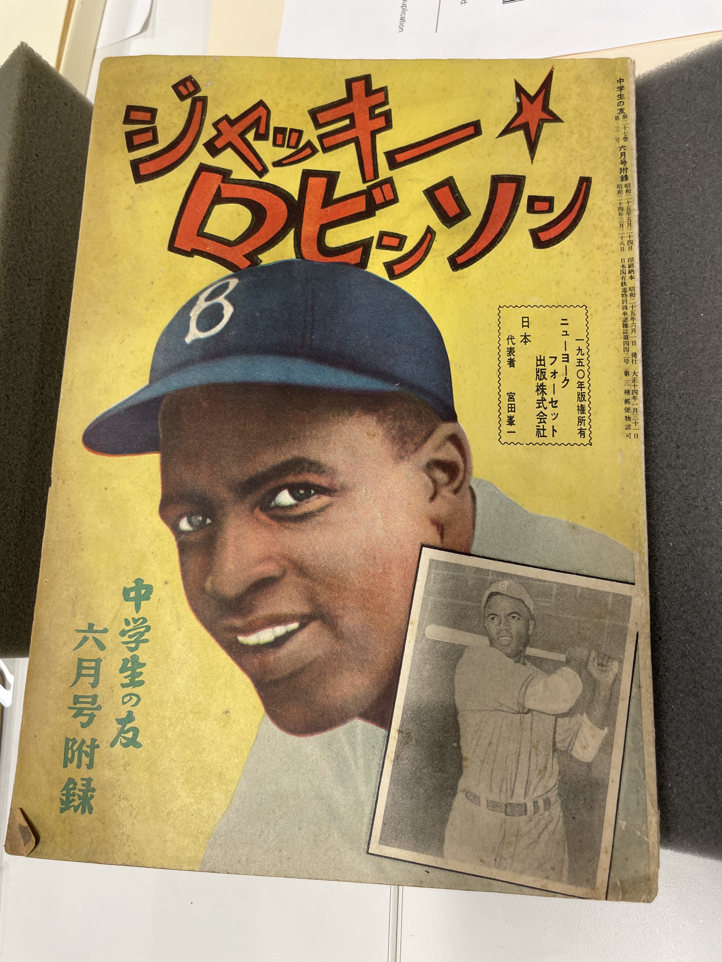 Later items included a Japanese magazine about Jackie Robinson, materials on the Nebraska Indians barnstorming ball club and a ticket to a National Colored League game at Hinchcliffe Stadium in Paterson, New Jersey, home town of Larry Doby.