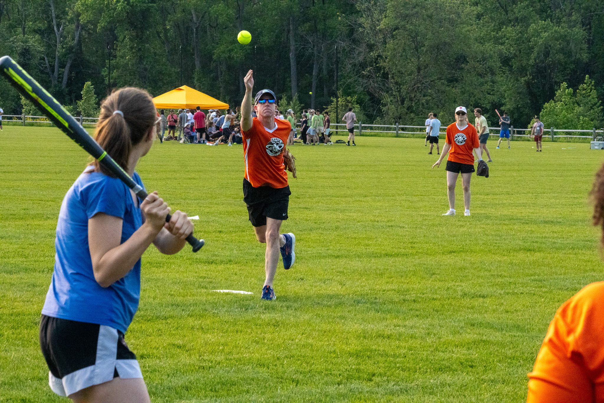 Not able to play, I switched to team photographer mode this week. The transition from shooting the faced-paced action of collegiate baseball earlier this year to Division C slow-pitch softball was a challenge.