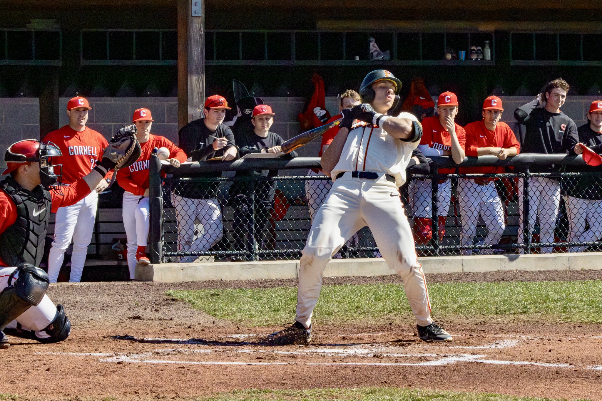 After its annual season-opening road trips to the South, the Princeton baseball team opened the Ivy League season at home over the weekend, splitting a series 2-1 with Cornell. The Tigers banged out hit after hit to sweep the Saturday doubleheader 13-7 and 12-0 but dropped the finale to the Big Red 6-3 on Sunday.